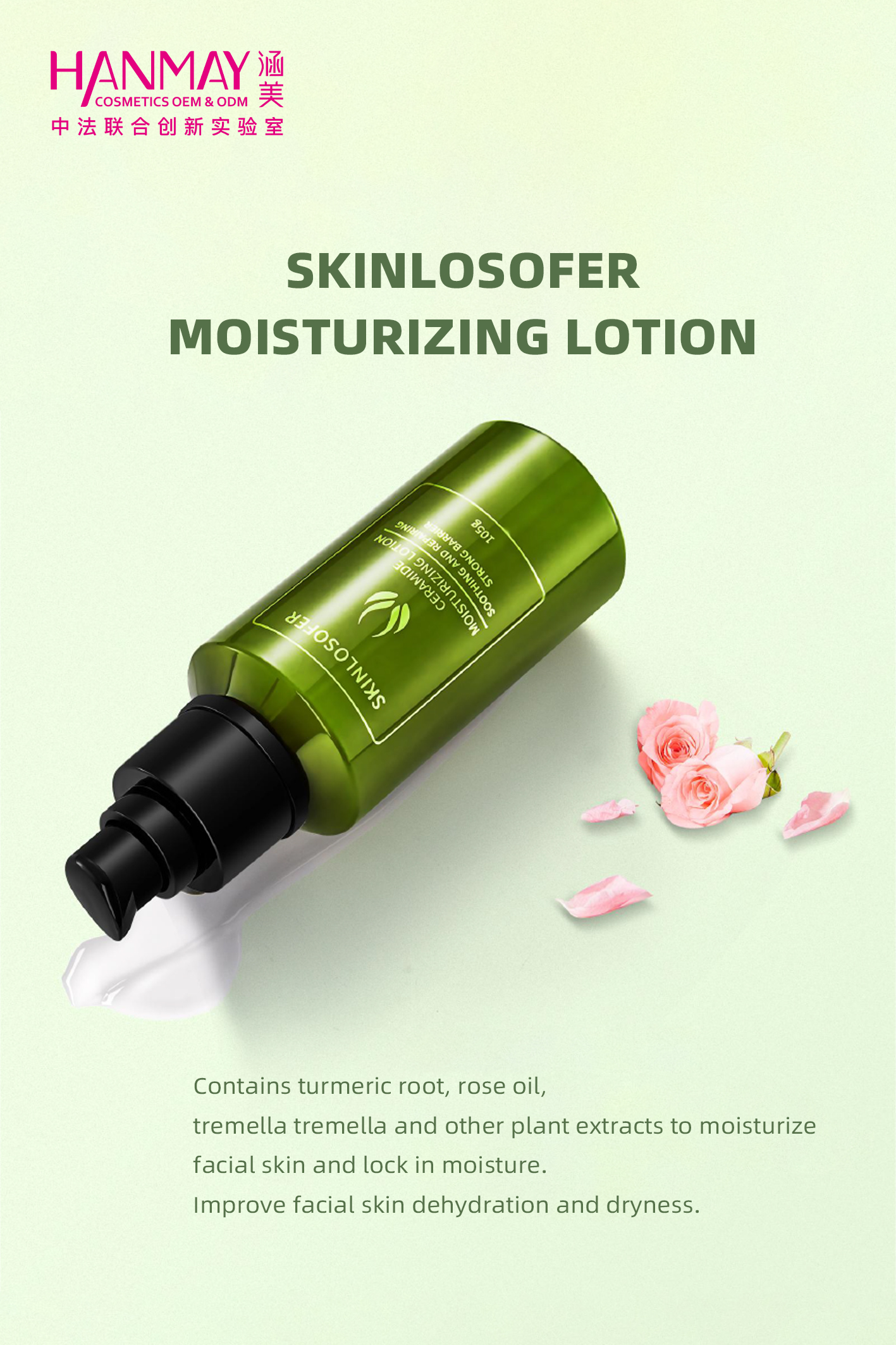 Contains turmeric root, rose oiltremella tremella and other plant extracts to moisturizefacial skin and lock in moisture.lmprove facial skin dehydration and dryness.